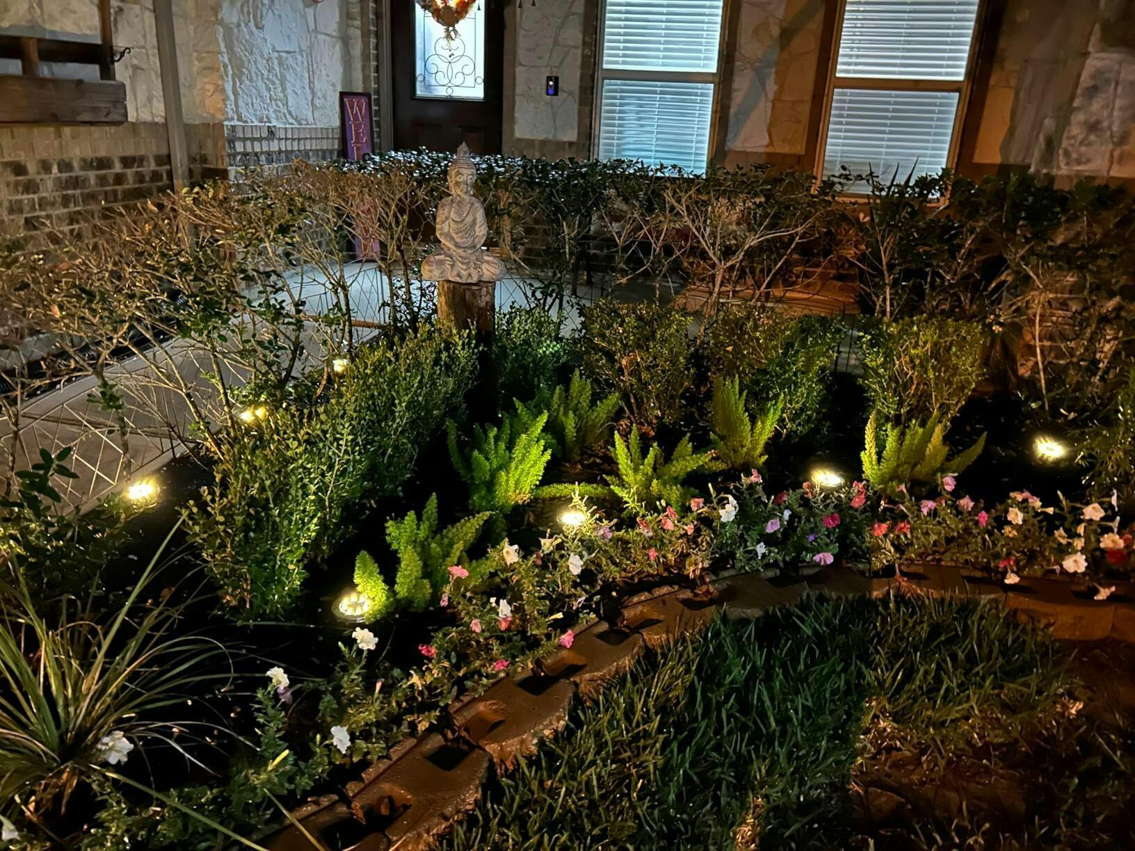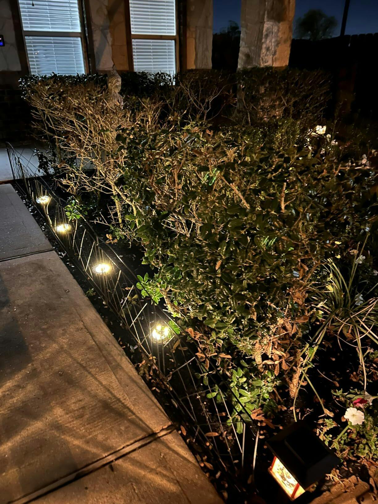 Vivo en un clima seco y árido donde es difícil cultivar y mantener plantas y flores. Por eso, tengo que embellecer el jardín usando principalmente mantillo y piedras. Quería darle un toque de brillo al parterre con luces/paneles de jardín enterrados, y estos no me decepcionaron.